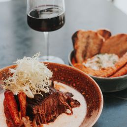 Walked in on a Friday evening 7:30ish and got seated right away. Started off with smoky old fashion and a glass of Chardonnay.So good!Our entrees,salmon and beef short ribs,were just amazing!We also shared a crème brûlée,it was so good.My husband got a glass of Pino and he enjoyed it. Shout out to Max, amazing service ...he was exceptional! Shocked this restaurant isn't a 5 star. Yelpers-this place is very underrated!